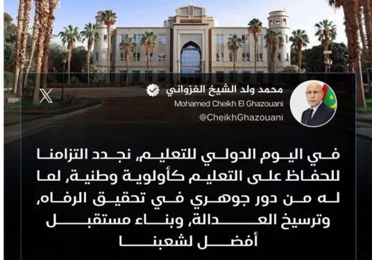 Le Président de la République Mohamed Ould Cheikh El Ghazouani s’est engagé, aujourd’hui samedi 24 janvier courant, à l’occasion de la célébration de la Journée internationale de l’éducation, à faire une priorité nationale.