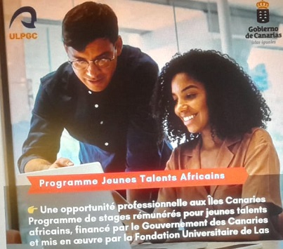 Financé par la Présidence du Gouvernement des Canaries et mis en œuvre par la Fondation Universitaire de Las Palmas, le « Programme Jeunes Talents » propose des stages non professionnels rémunérés pour de jeunes talents africains.