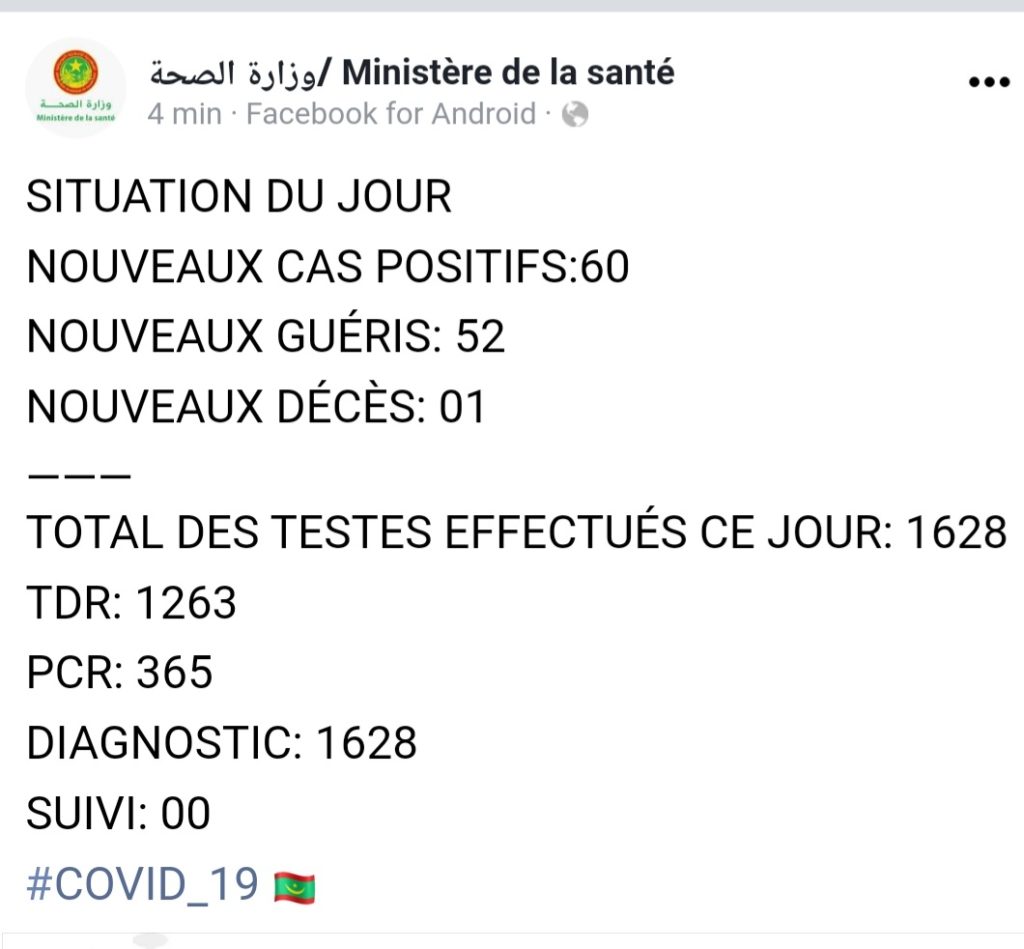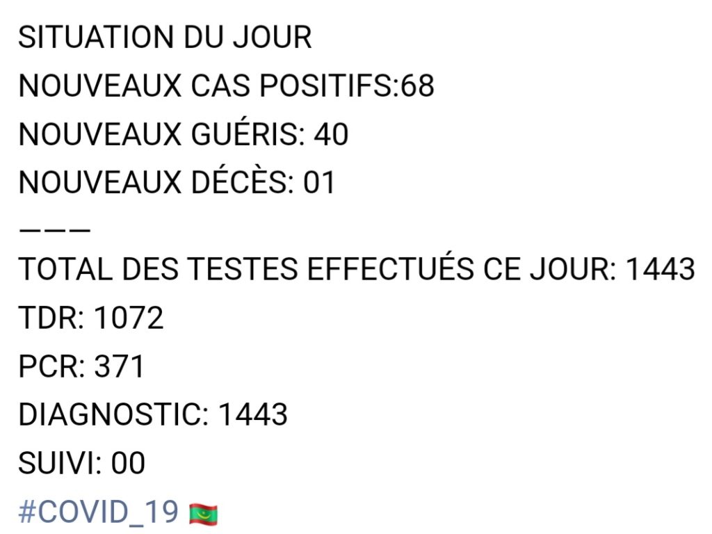 Situation du Covid19 ces dernières 24h en Mauritanie