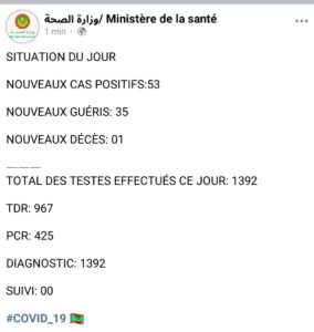 Situation du Covid19 ces dernières 24h en Mauritanie