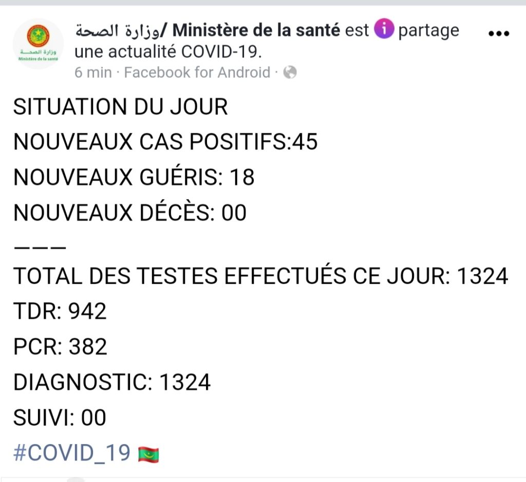 Situation du Covid19 ces dernières 24h en Mauritanie